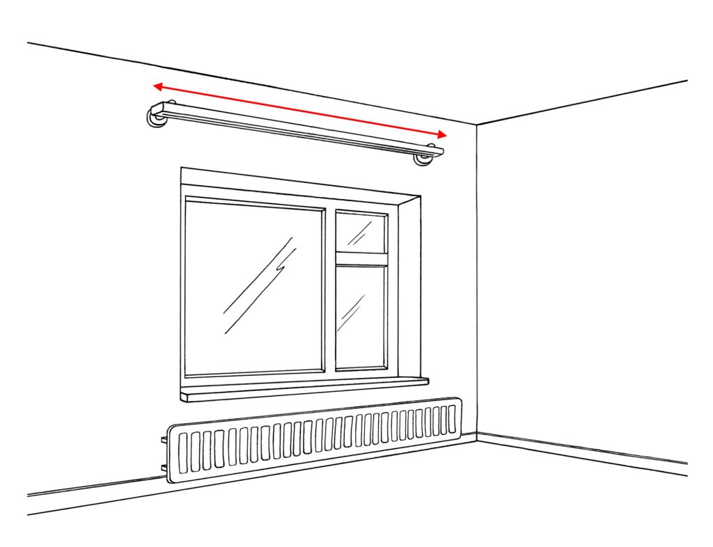 Bekijk en bepaal goed waar de gordijnrails komt te hangen. Let op obstakels zoals verwarmingsbuizen, radiatoren, vensterbanken, kantelkiep ramen, plafondplinten, uitsteeksels, enz.